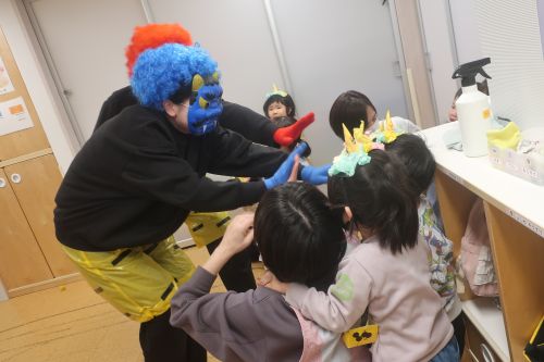 節分👹 2026 2/05 イベント 2月3日は節分👹 ✨恒例行事✨保育園にも赤鬼と青鬼がやってきました!👹 号泣しながらも、果敢に豆を投げ、鬼をやっつけようと必死😆 「おには~そと~!ふくは~うち~!」 怖くて号泣する子や、先生にしがみついている子もいましたが、 はな組さんの中には、頑張って豆を投げている子も😆 みんなで豆を投げ、無事に鬼は帰って行きました😄 そしてこの日の給食は鬼ランチ🍴 鬼は怖かったけど、ご飯はおいしくしっかり食べました🎵😊 イベント 前の記事へ 記事一覧へ戻る