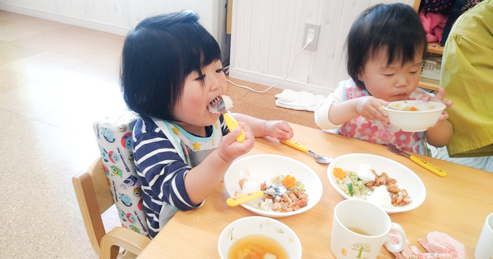 給食専門業者(一冨士フードサービス株式会社)により、きちんと吟味した安全な食材を使用しています。アレルギー食も対応可能。 カロリーと栄養を考慮したバランスの良い食事やおやつにより、良い食習慣を身につけます。 |
